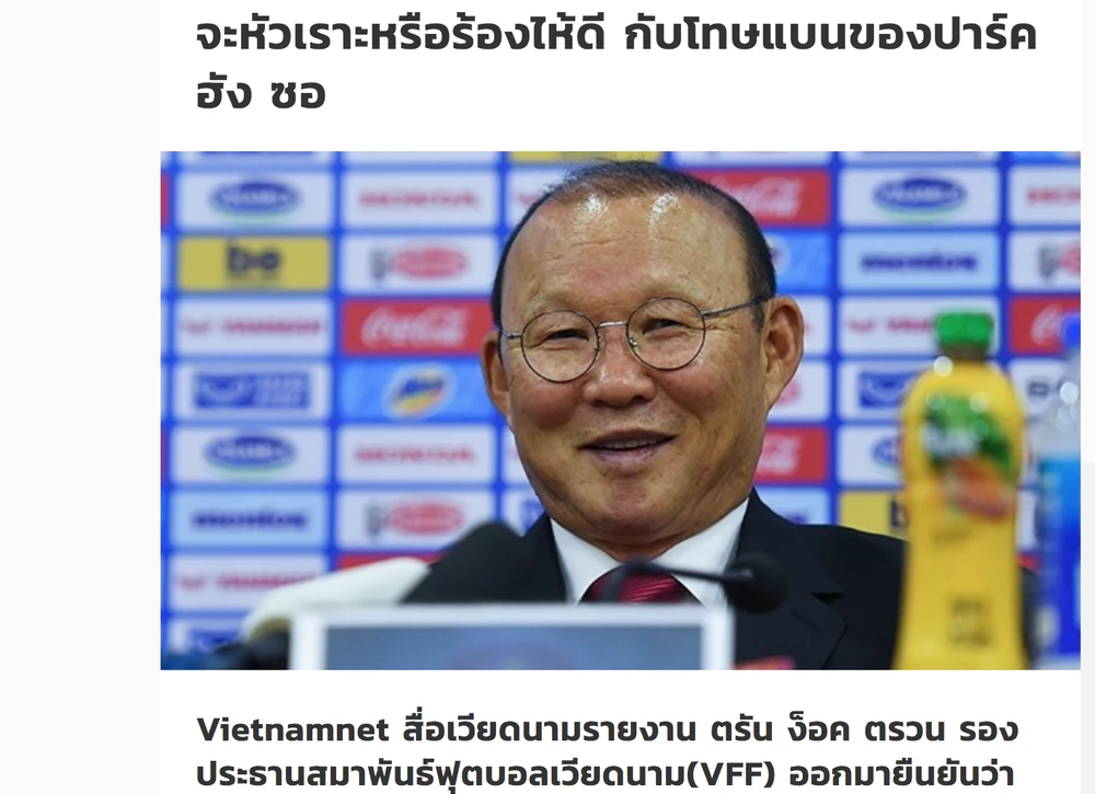 “Nên khóc hay cười với án phạt của HLV Park”, là tiêu đề bài viết trên Siam Sport, chuyên trang thể thao hàng đầu Thái Lan.
