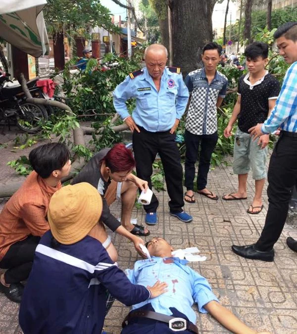 Trước đó, khi đang đứng làm nhiệm vụ bảo vệ phía trước một nhà hàng trên đường Trần Quốc Thảo (quận 3), người thanh niên nói trên bất ngờ bị một nhánh cây lớn rơi trúng đầu, bất tỉnh, phải đưa đi cấp cứu.