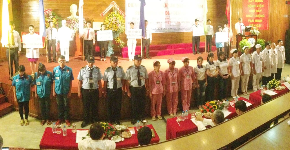 Toàn bộ cán bộ, nhân viên BV Chợ Rẫy đều cam kết thay đổi phong cách, thái độ phục vụ. Ảnh: TÙNG SƠN