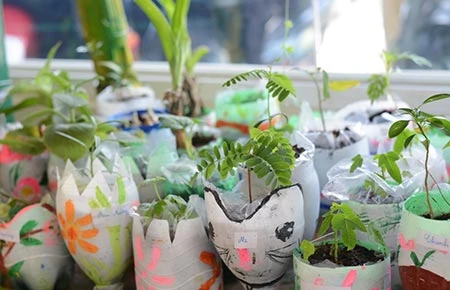 Chai nhựa dễ dàng tái chế thành những chậu cây xinh xắn. Ảnh: NGỌC CHÂU