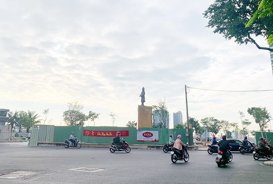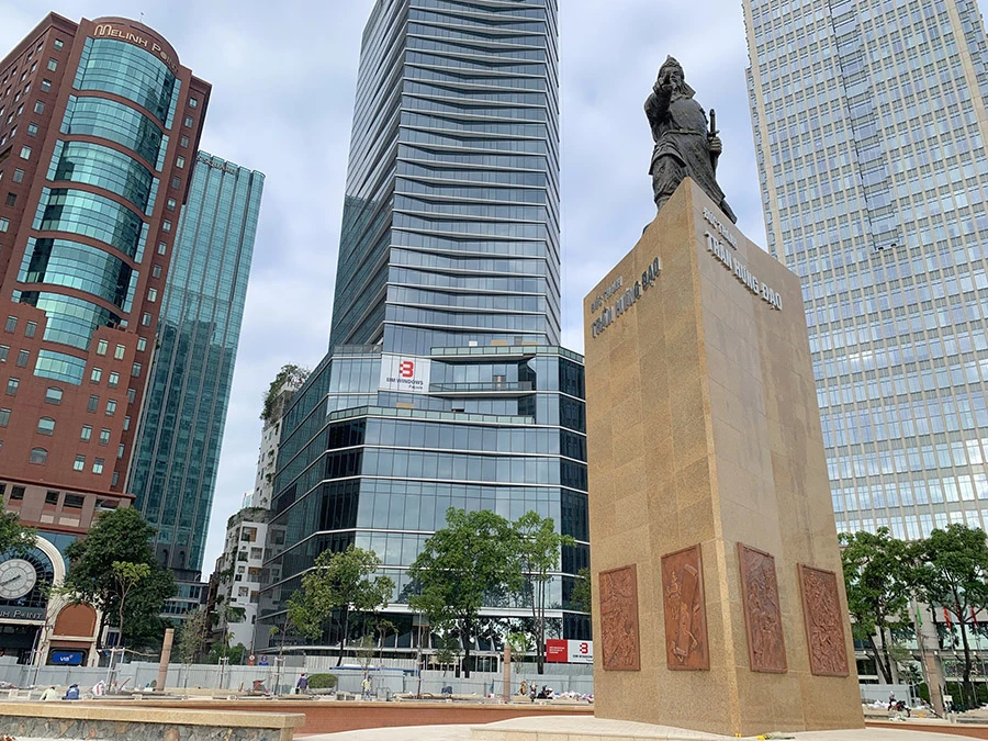 Công viên Công trường Mê Linh và tượng đài Đức thánh Trần Hưng Đạo trong những ngày cuối của việc chỉnh trang khu vực bến Bạch Đằng.
