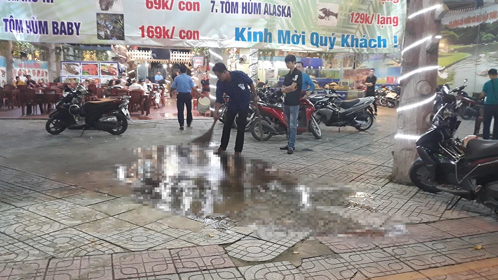 Nạn nhân mất nhiều máu, gục xuống và được người thân đưa đi bệnh viện cấp cứu trong tình trạng nguy kịch. Vụ việc khiến nhiều người ăn uống tại quán hốt hoảng rời đi.