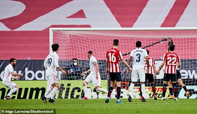 Bàn thắng duy nhất của Nacho giúp Real Madrid thắng Bilbao 1-0 để đeo bám ngôi vô địch. Ảnh: Shutterstock.