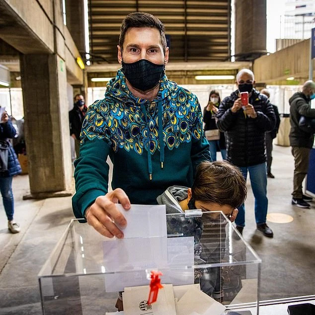 Messi bỏ phiếu cho Laporta. ẢNH: DAILY MAIL