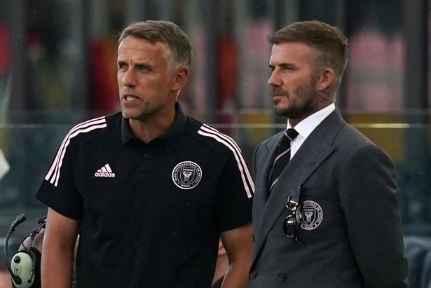 Chủ tịch Inter Miami, David Beckham và HLV Phil Neville. ẢNH: USA TODAY