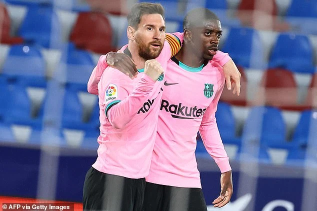 Messi lập cú đúp, Dembele cũng ghi bàn nhưng Barcelona chỉ có được 1 điểm trên sân của Levante. Ảnh: Getty Images.