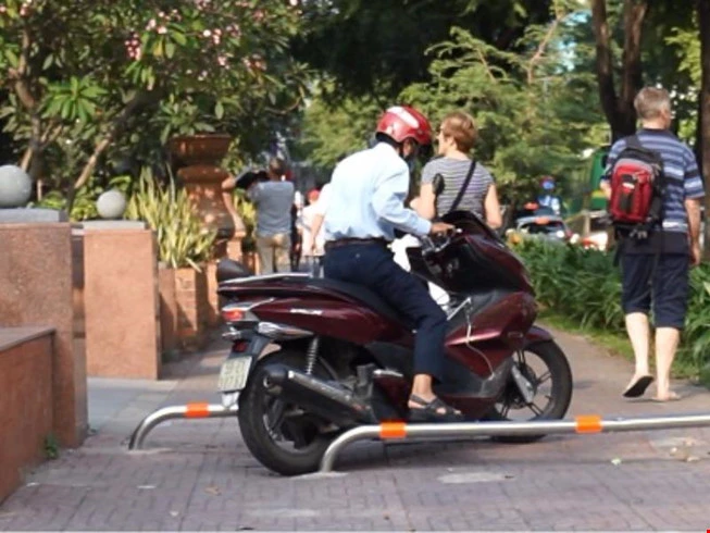 Việc thí điểm gắn barie trên vỉa hè một số con đường ở trung tâm TP nhằm mục đích ngăn người đi xe máy leo lề, từ đó xây dựng ý thức tôn trọng luật giao thông xuất phát từ động cơ tốt nhưng hiệu quả lại không như mong muốn.