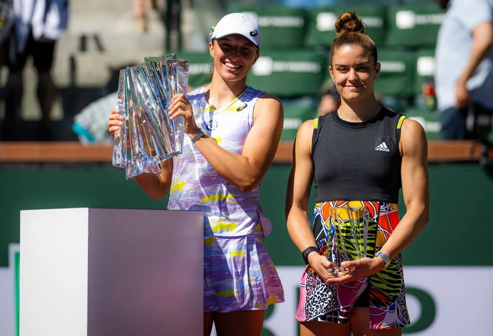 ĐKVĐ Indian Wells - Iga Swiatek (trái) sẽ nhảy lên vị trí số 1 nữ thế giới sau khi tên Barty rút tên khỏi bảng xếp hạng WTA. ẢNH: GETTY