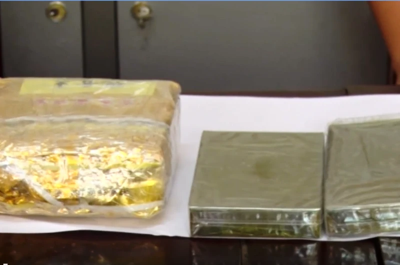Tang vật gồm hai bánh heroin và bao ma túy đá.