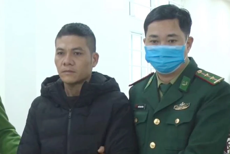 Bộ đội Biên phòng và Công an bắt giữ và dẫn giải Khuất Đình Diễn về tạm giữ.
