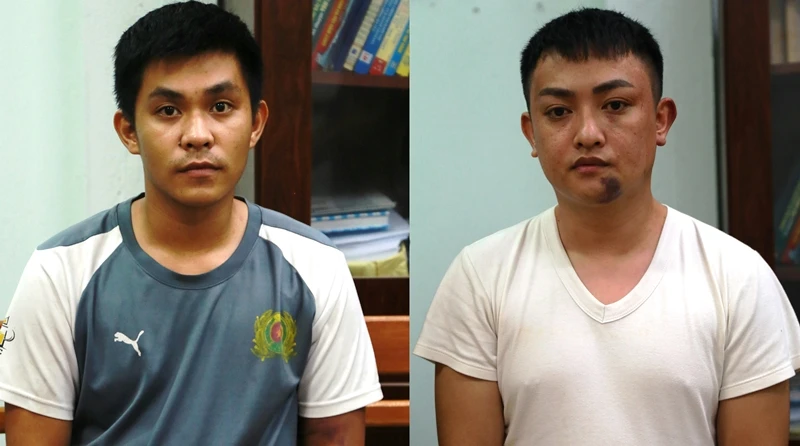 Hai nghi phạm chuyên giật tài sản của phụ nữ đi đường. Ảnh: HẢI HIẾU