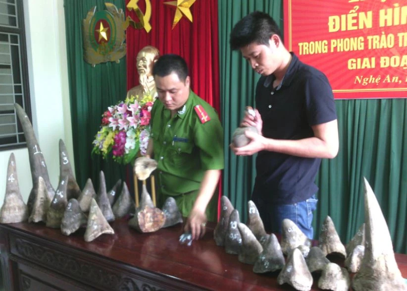 Bước đầu tại cơ quan Định và Trung khai, ngày 5-5, một đối tượng đặt vấn đề thuê Định vào TP.HCM vận chuyển 37kg sừng tê giác về Nghệ An với tiền công 40 triệu đồng. Định nhận lời và rủ thêm Trung cùng tham gia phi vụ đi vận chuyển thuê sừng tê giác. Ngày 7-5, Định và Trung có mặt tại TP.HCM rồi nhận số sừng tê giác trên rồi mua vé tàu vận chuyển về Nghệ An thì bị bắt giữ.
