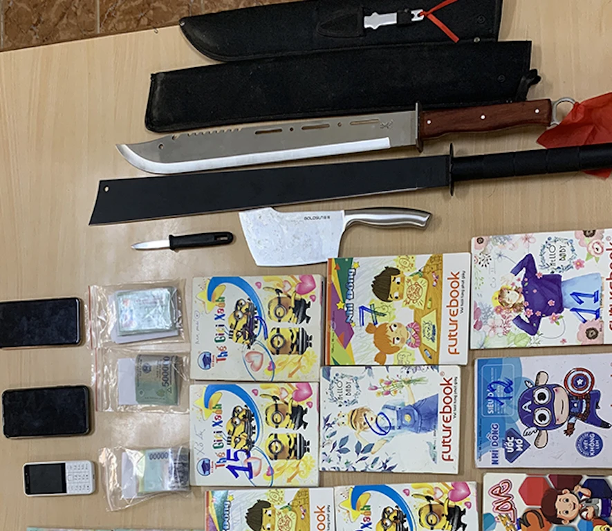Từ lời khai của An, công an bắt khẩn cấp đối với Tùng và khám xét nơi ở của người này, thu giữ thêm 17 quyển tập ghi danh sách người vay tiền, 200 triệu đồng tiền mặt và hai cây mã tấu.
