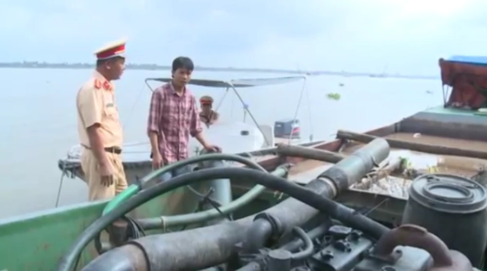 Ngày 16-12, Phòng Cảnh sát đường thủy, Công an tỉnh Vĩnh Long phối hợp với Công an huyện Mang Thít vừa bắt giữ hai phương tiện đang hút cát trái phép trên sông Cổ Chiên.
