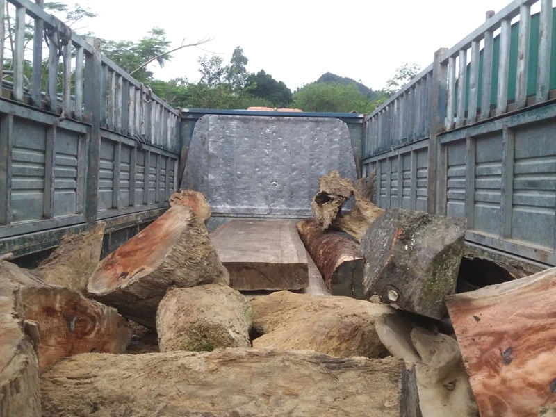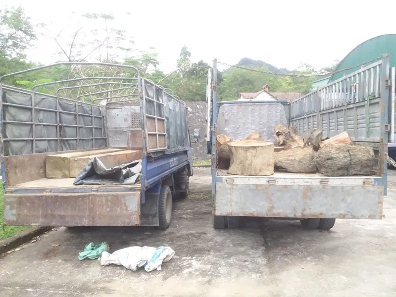 Nhiều gốc gỗ nu được vận chuyển trên xe tải không giấy tờ về nguồn gốc.