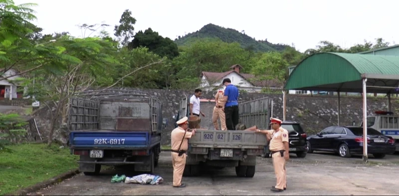 Qua kiểm tra, lực lượng CSGT phát hiện trên xe tải 92C-021.26 chứa hai phách gỗ, một bi gỗ tròn, 12 cục gỗ nu. Tài xế Phan Tá Phước (trú huyện Đại Lộc, Quảng Nam) không xuất trình được giấy tờ chứng minh nguồn gốc số gỗ trên.