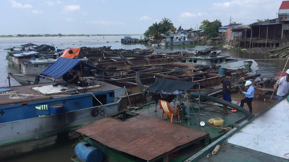 Các phương tiện hút trộm cát trên sông Tiền.