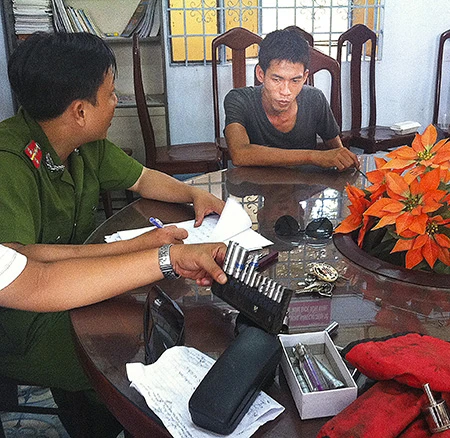 Thái Văn Hiếu cùng tang vật là dụng cụ để trộm cắp xe máy.