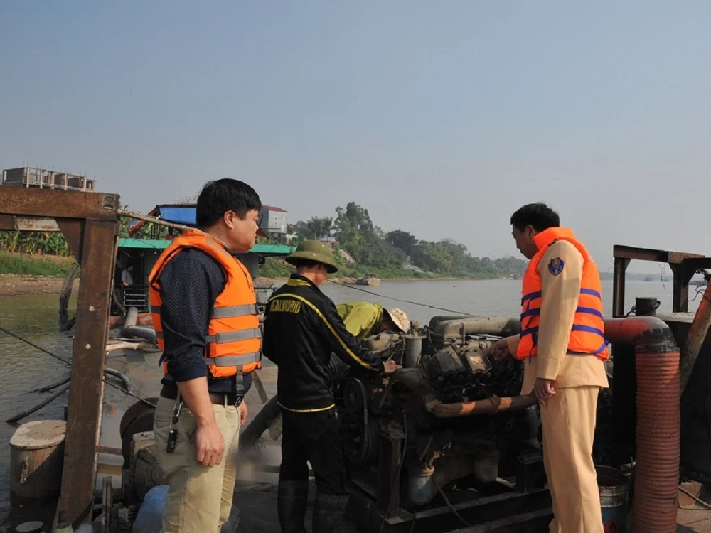 Ngày 4-1, Cục CSGT (C67), Bộ Công an cho biết đơn vị vừa phối hợp với Đội 2 Cảnh sát đường thủy (Công an TP Hà Nội) phát hiện một vụ khai thác cát trái phép với số lượng lớn.