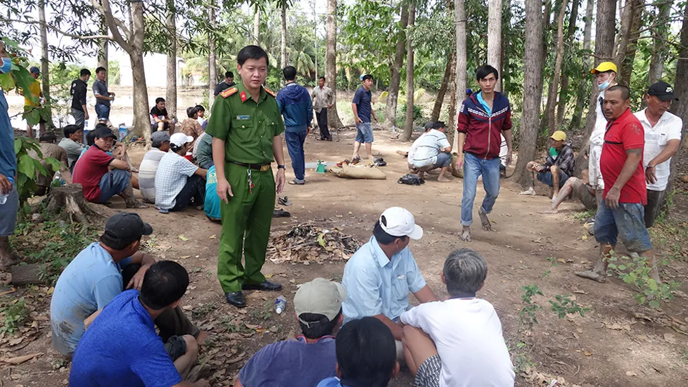 Theo đó, vào trưa cùng ngày hàng chục người tụ tập tổ chức đá gà ăn tiền tại vườn sao thuộc Tổ 15, khóm Bình Đức 5, phường Bình Đức, TP. Long Xuyên. Qua công tác nắm tình hình, các đội nghiệp vụ Công an thành phố phối hợp cùng Công an phường Bình Đức đã tổ chức vây bắt khi các con bạc đang say sưa sát phạt.