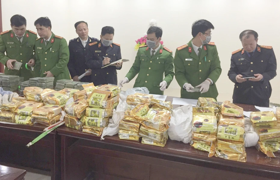 Tang vật thu giữ trên xe gồm tám bao tải chứa 150 bánh chất bột nén màu trắng có trọng lượng 64.185,21 g nghi là heroin và 126 gói chất tinh thể màu trắng có trọng lượng 175.876,37 g nghi là ma túy đá (chất Methamphetamine).