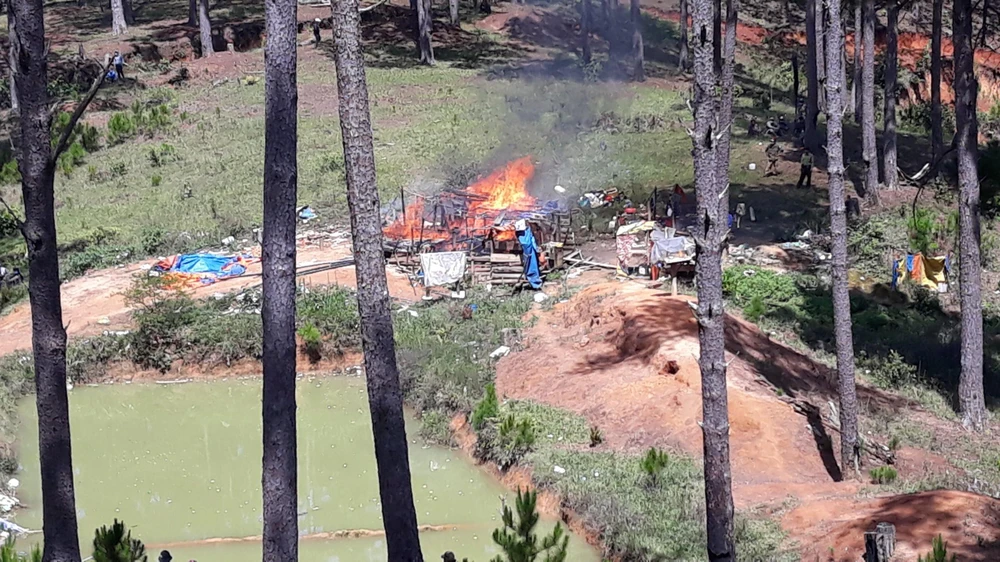 Theo thông tin ban đầu, ngày 5-5, Hạt Kiểm lâm huyện Lạc Dương phối hợp với Công an huyện truy quét khai thác thiếc lậu tại địa bàn xã Đa Nhim và Đa Sar bắt giữ bốn người đang khai thác thiếc.