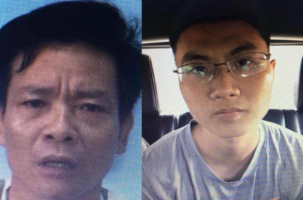 Hai cha con Khanh (bên trái) và Thành tại cơ quan điều tra. Ảnh: CA