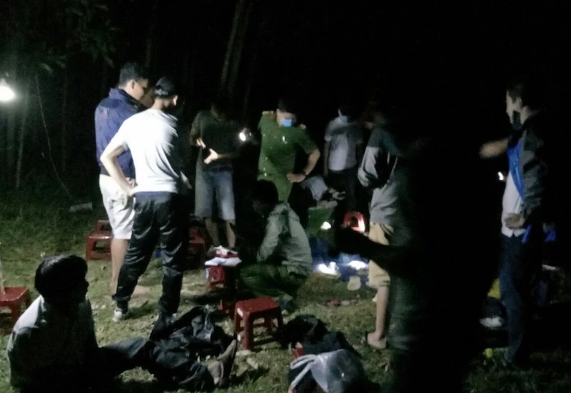 Ập vào bắt quả tang, công an bắt giữ 9 người. Những người còn lại đã lợi dụng đêm tối trốn thoát.