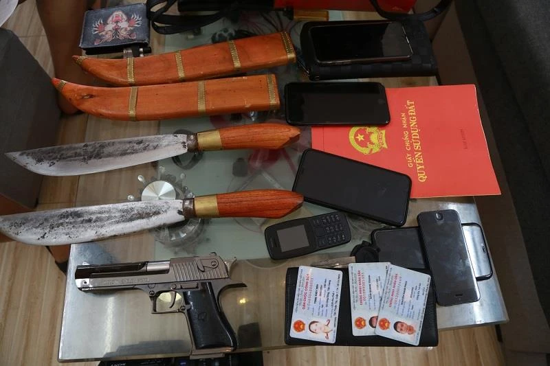 Khoảng 9 giờ 30 ngày 25-8, Phòng Cảnh sát hình sự phối hợp với Công an TP Huế đồng loạt tiến hành khám xét khẩn cấp chỗ ở của nhóm người nói trên. Tại đây, cơ quan công an đã phát hiện và thu giữ số tiền hơn 100 triệu đồng; bốn thùng đựng sổ sách, tài liệu thể hiện việc cho vay tiền; hai con dao kim loại dài khoảng 50 cm; hai đùi sắt, một khẩu súng nhựa được các đối tượng dùng để đe dọa đòi nợ và một xe máy trộm cắp.