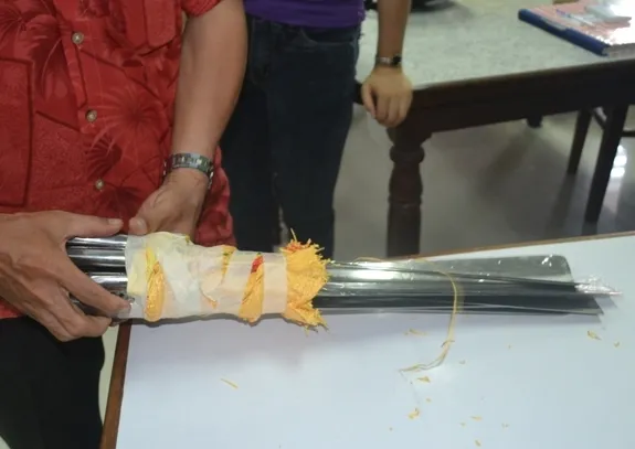 Tại nhà riêng của Nga, Công an thu giữ nhiều cây mã tấu, súng bắn điện. Bước đầu, Nga khai nhận mua số hàng "nóng" này cho con trai “phòng thân”.