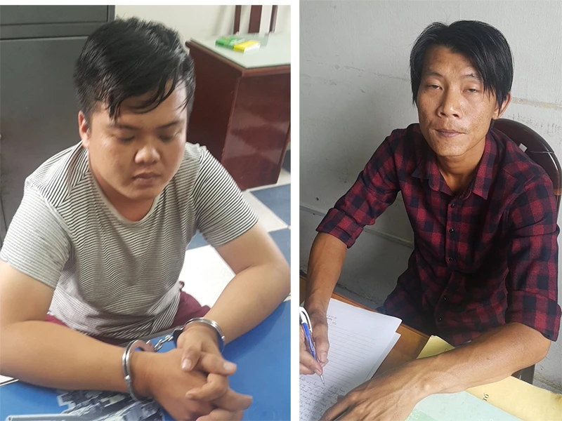 Nam (bên trái) và Khải bị Công an quận Tân Phú bắt sau vụ cướp ngân hàng bất thành trên địa bàn. Ảnh: CA