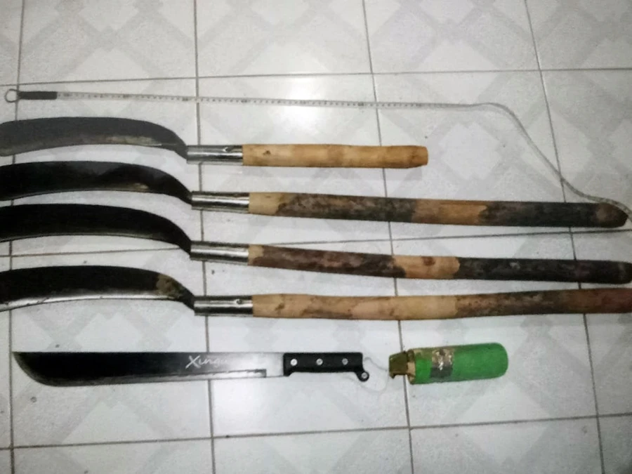 Đến khoảng 19 giờ 39 phút thì lực lượng Công an huyện Bắc Bình đến giải quyết thì cả hai nhóm đều bỏ chạy thoát thân. Công an đã thu giữ tại hiện trường 1 xe ô tô 49A-34107, 1 xe mô tô biển số 86B1- 45721, 17 dao mã tấu các loại, 1 áo giáp, 1 quả đạn khói đã qua sử dụng.
