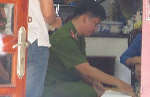 Công an lập biên bản, khám xét nhà bà Trâm. Ảnh: A.NHÂN