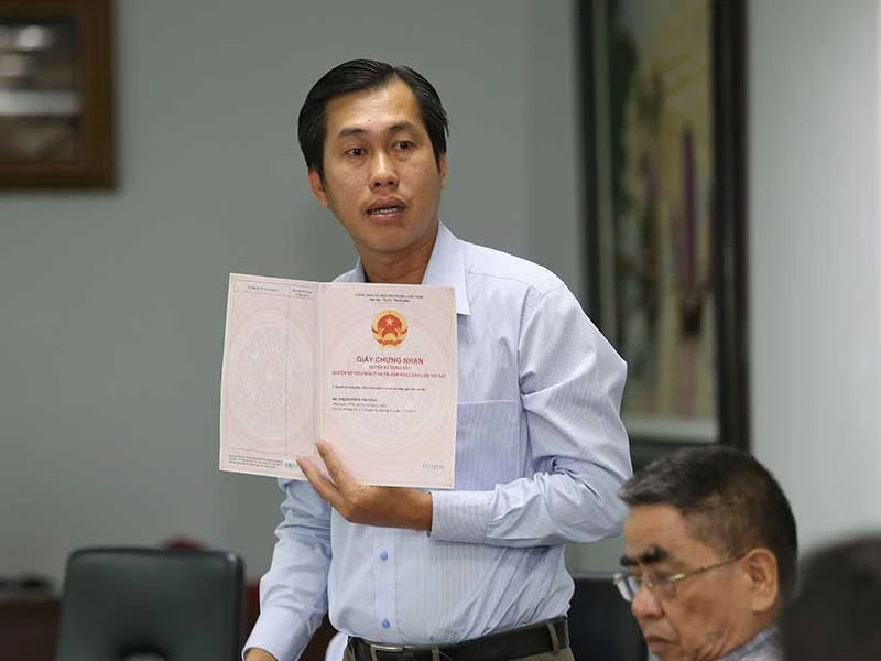 Tháng 10-2015, bà C. nói có khách mua đất, nhờ ông Cường đến Phòng Công chứng số 2 để ký chuyển nhượng đất nhưng bị phòng này phát hiện giấy chứng nhận giả và lập biên bản tạm giữ giấy tờ.