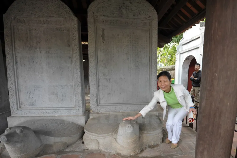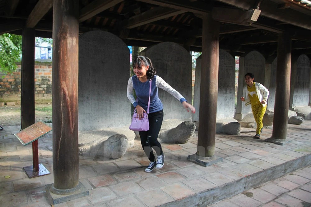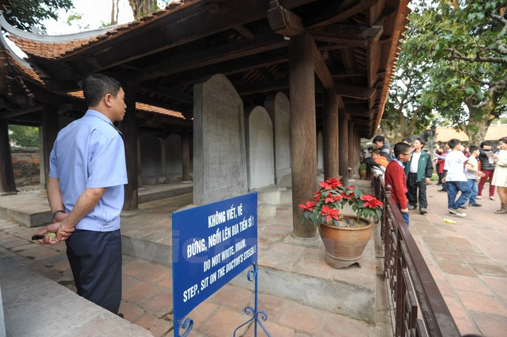 Ban quản lý khu di tích Văn Miếu-Quốc Tử Giám từ lâu đã cho xây dựng hàng rào ngăn không cho người dân đụng chạm đến văn bia tiến sĩ nhưng nếu như không có lực lượng an ninh, hàng rào trở nên vô dụng.