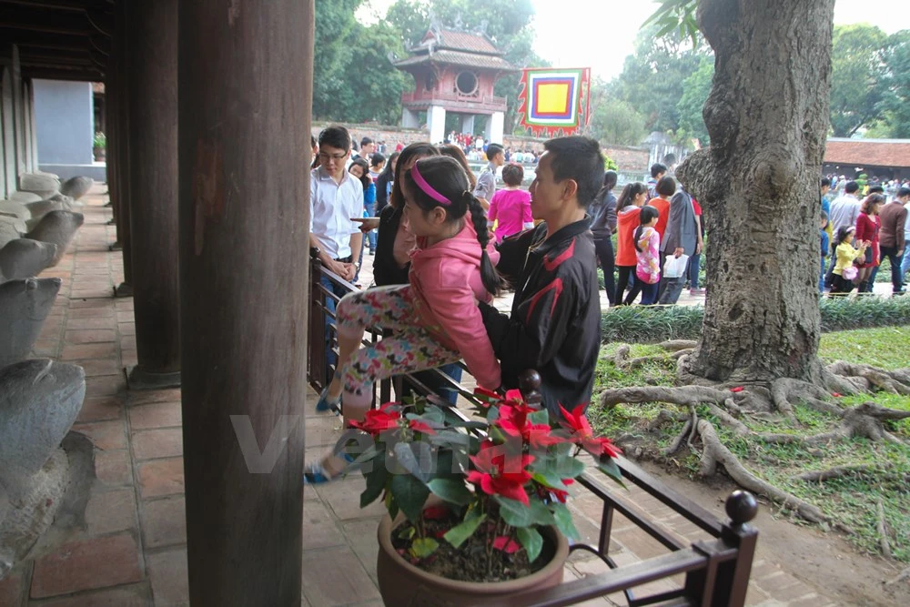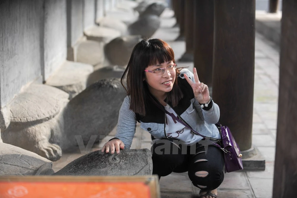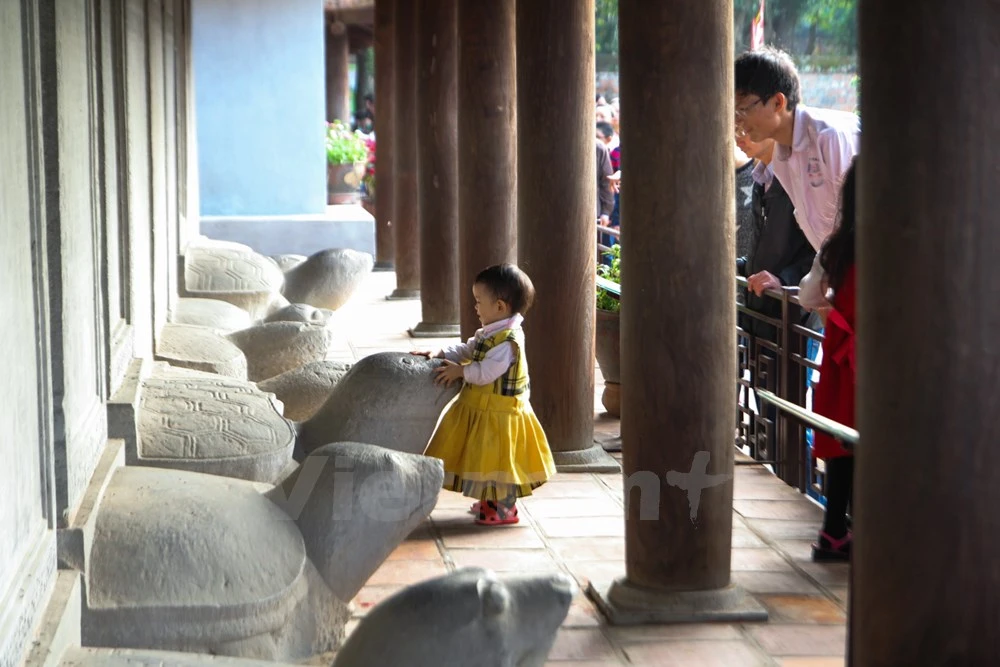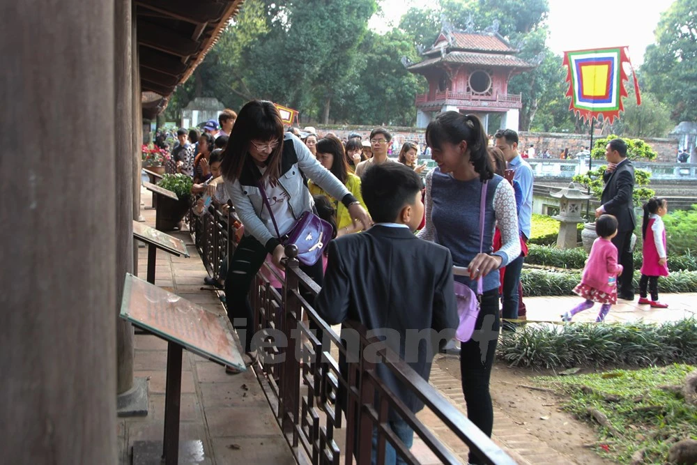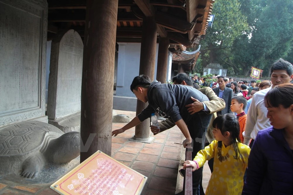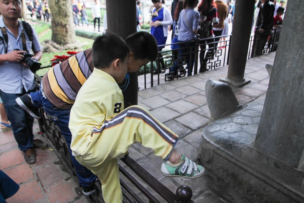 Với suy nghĩ, sờ đầu rùa sẽ được may mắn, học hành giỏi giang, đỗ đạt, nhiều gia đình đã bất chấp đưa con em mình vượt rào để vào trong khu vực cấm.