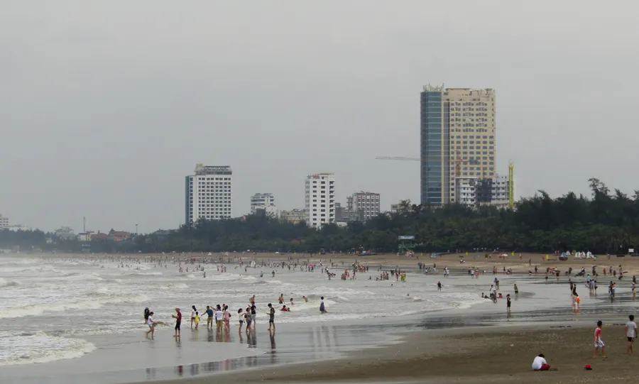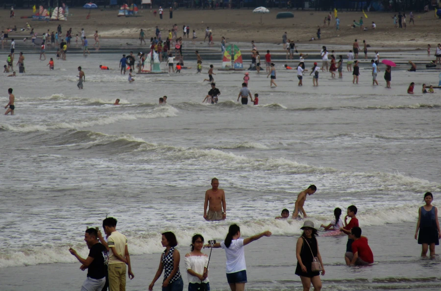 Rất đông du khách xuống tắm biển Cửa Lò .