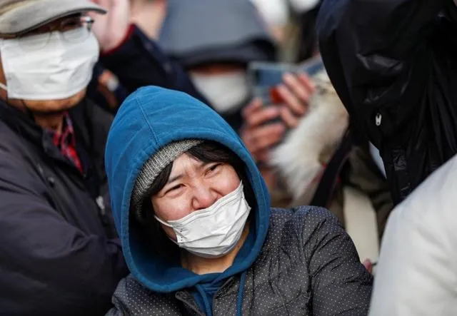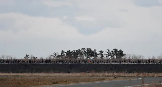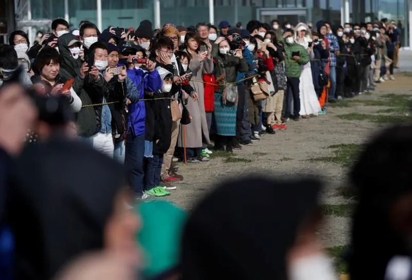 Hàng trăm người dân Nhật Bản đứng bên ngoài căn cứ Matsushima chờ đợi khoảnh khắc nhận đuốc. Ảnh: REUTERS