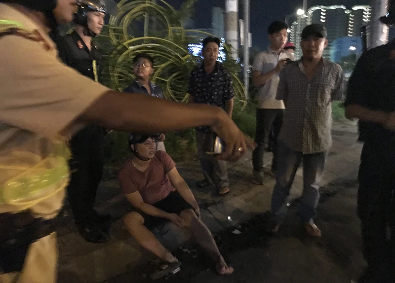 Lập tức, Đội CSGT Nam Sài Gòn đang xử phạt nồng độ cồn phải xử lý vụ tai nạn. Ảnh: L. THOA