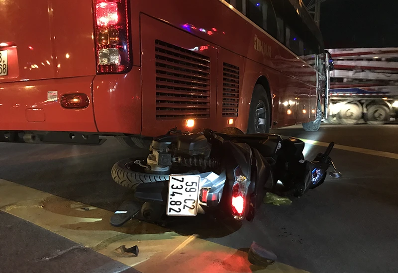 Vào khoảng 21 giờ 30 ngày 6-7, một vụ tai nạn giao thông đã xảy ra ngay ngã tư Nguyễn Văn Linh - Nguyễn Thị Thập (quận 7, TP.HCM) giữa xe khách giường nằm mang biển số 51B-18068 và xe máy mang biển số 59C2-734.82.