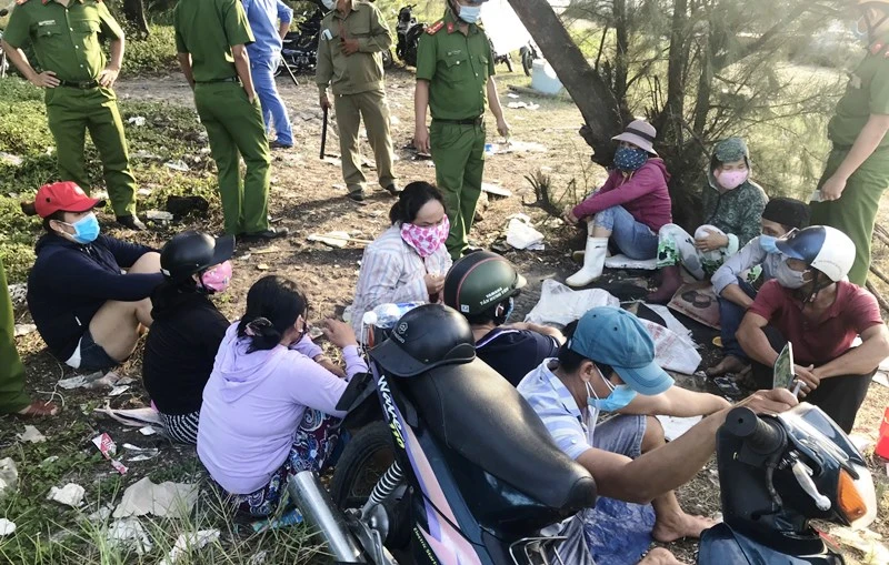 Những người tụ tập đánh bạc trên bờ biển Đà Nẵng ngay trong dịch COVID-19. Ảnh: CA