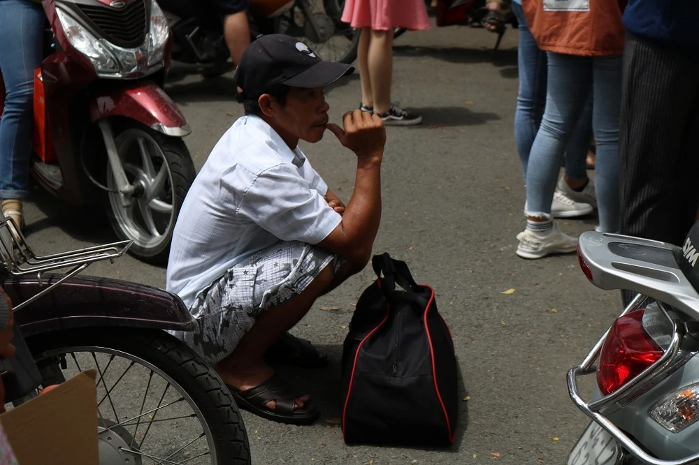 Dù trưa nắng nhưng ông bố này vẫn ngồi chờ con. "Gần 11 giờ rồi, chờ con ra hai cha con bắt xe về nhà luôn!”, ông chia sẻ.