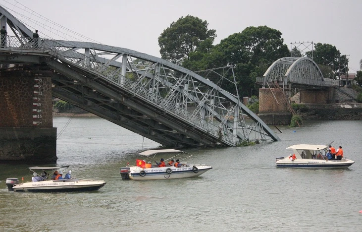 Hai lái phụ điều khiển chiếc đầu kéo sà lan chở cát tông sập cầu Ghềnh.