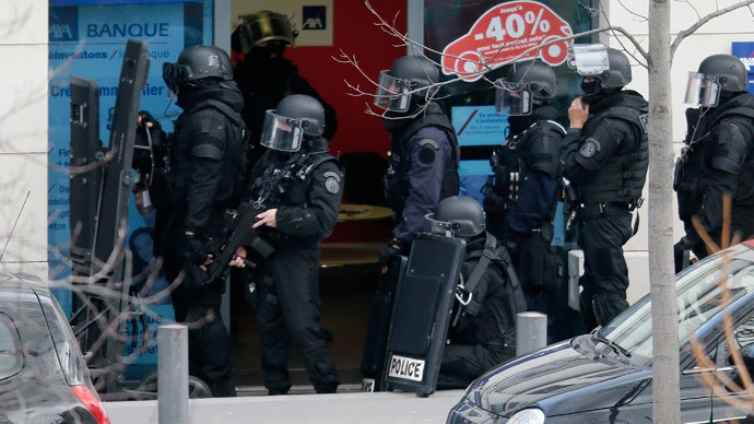 Cảnh sát vũ trang bao vây bưu điện (Ảnh: BFM TV)