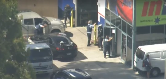 Cảnh sát vây ráp nhà máy InLine (Ảnh: 7News)