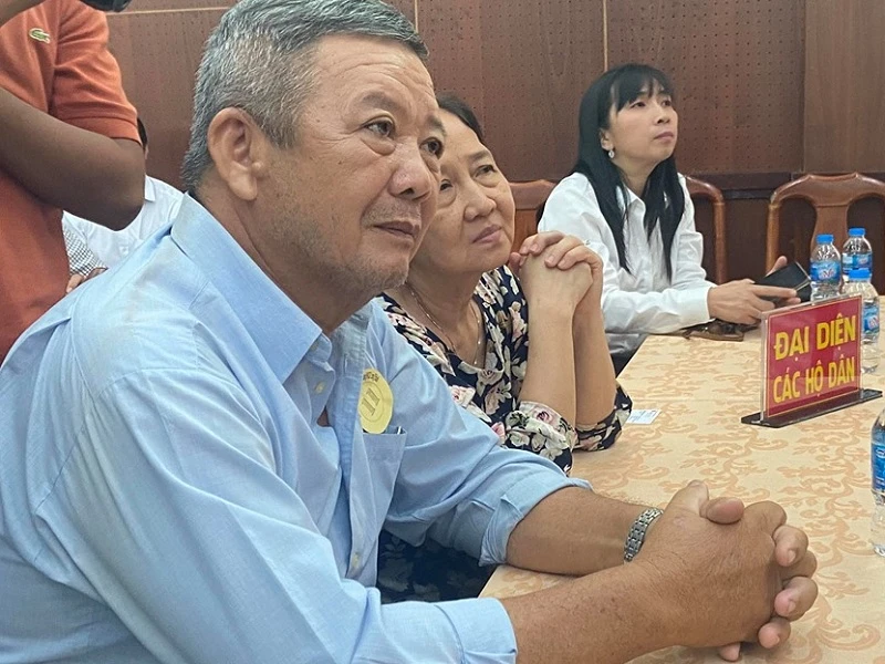 Đại diện các hộ dân nhận tiền bồi thường, hỗ trợ thu hồi đất trong dự án sân bay Long Thành. Ảnh: VH