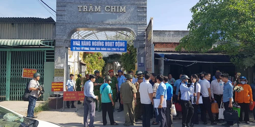 Hôm nay (7-1-2020), UBND huyện Bình Chánh, UBND xã Tân Quý Tây và các cơ quan liên quan bắt đầu cưỡng chế công trình Gia Trang quán Tràm Chim Resort.