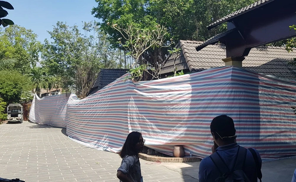 Các hạng mục công trình được quây bạt để kiểm kê tài sản trước khi phá dỡ. Ảnh: Kiên Cường