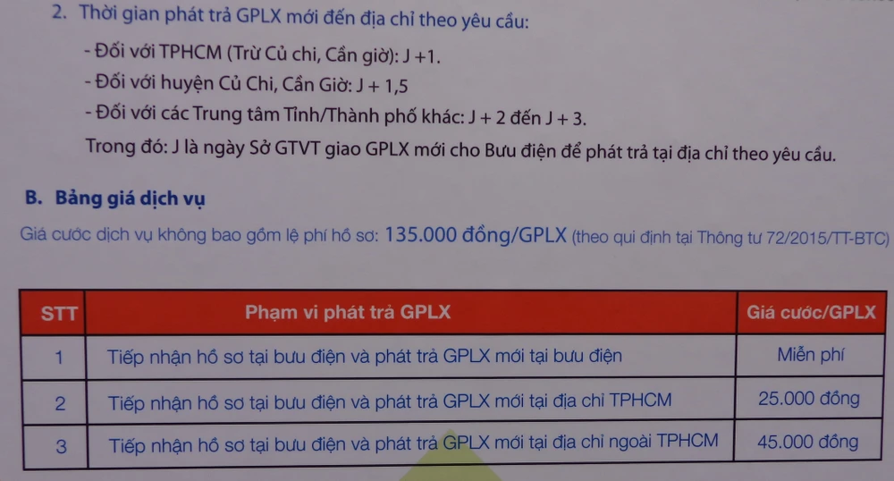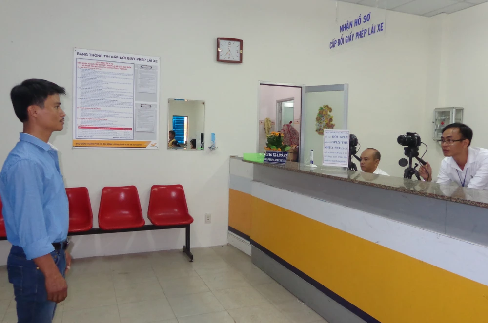 Tại bưu cục Bình Chánh, đơn vị này thay mặt Sở GTVT trực tiếp làm các thủ tục, thu lệ phí cấp đổi GPLX theo quy định của Bộ Tài chính là 135.000 đồng/bằng lái.