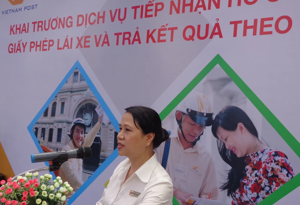 Bà Đặng Thị Nga, Giám đốc Bưu điện TP, giải thích về các dịch vụ tiếp nhận hồ sơ cấp đổi GPLX.